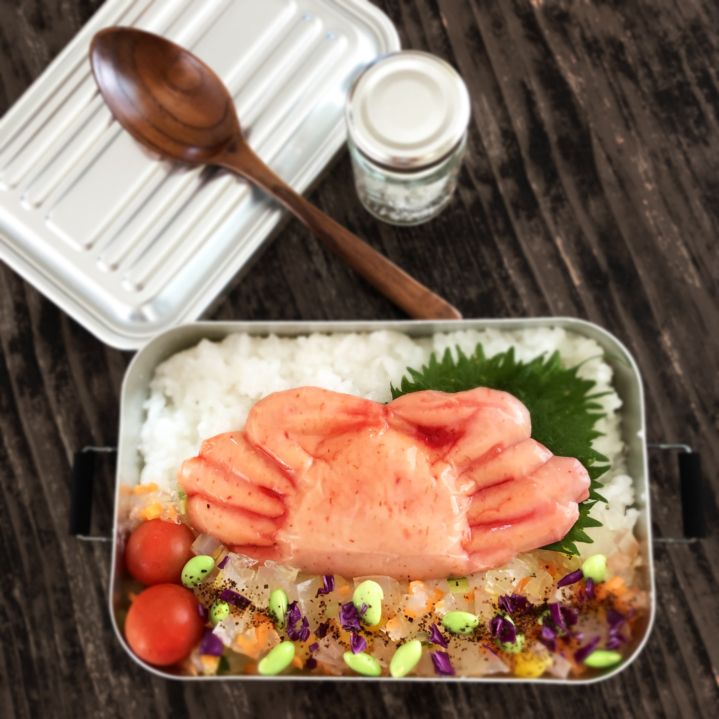 それを使って冷たいおかゆでたぶんカニ弁当を作りました。