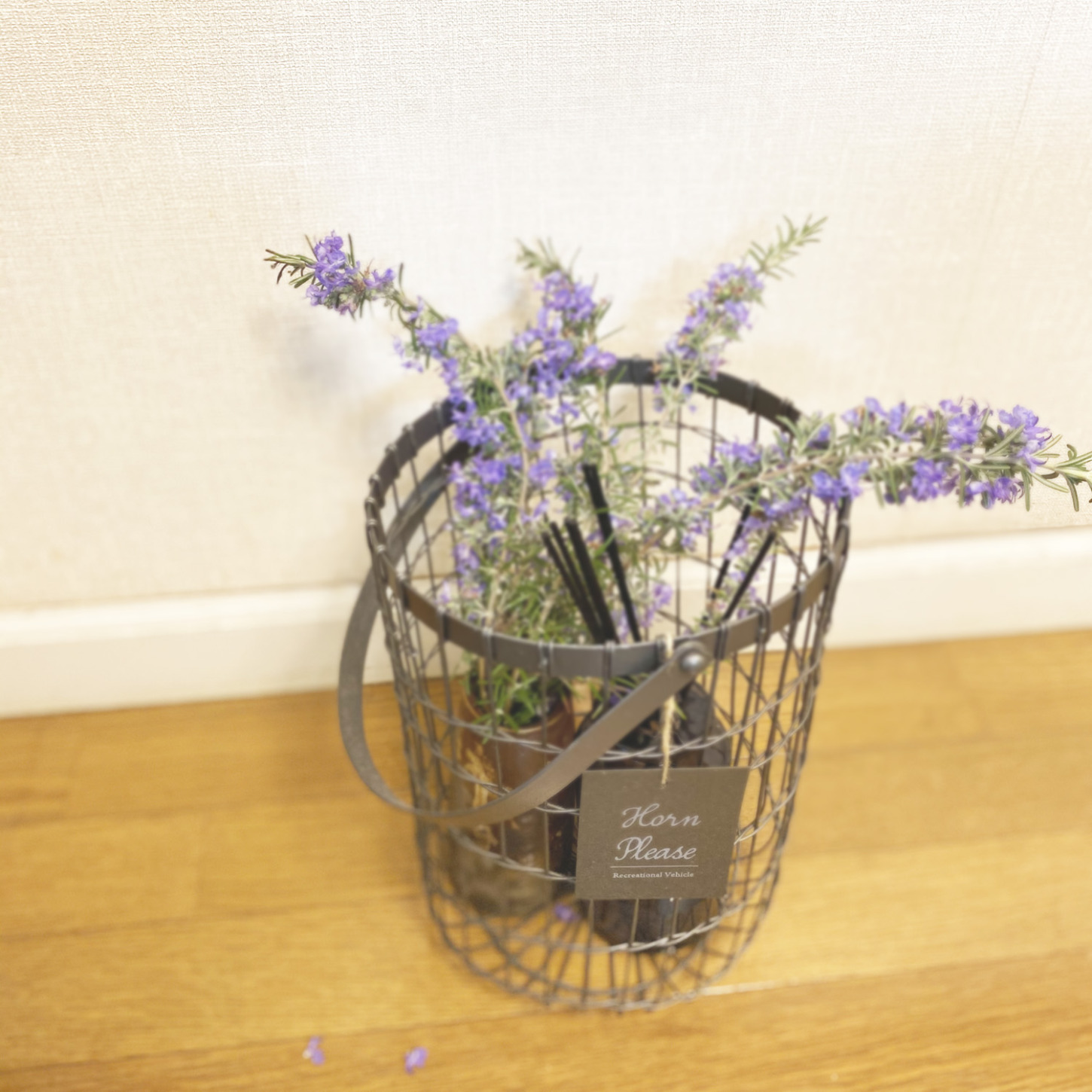 いつの間にか花が咲いていたローズマリーの枝を手折って