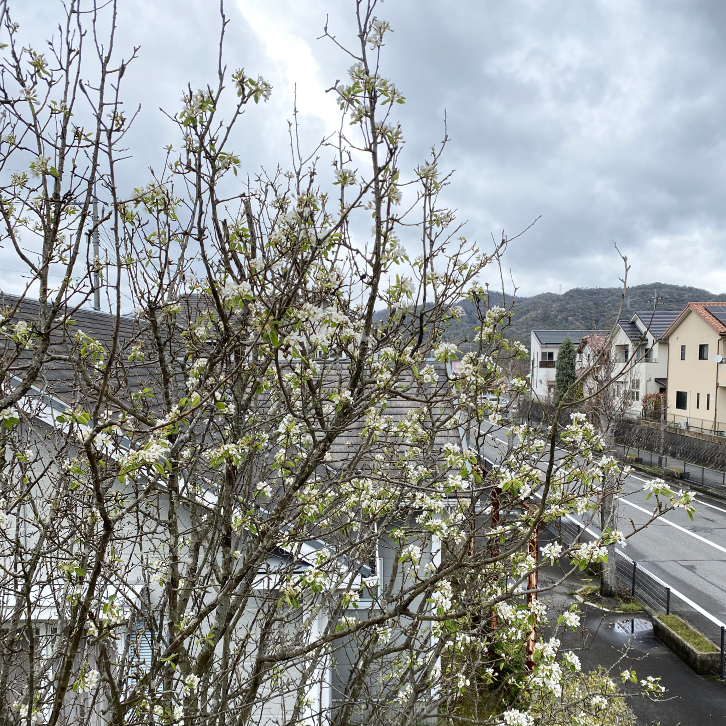 庭の洋梨が花を咲かせていました。