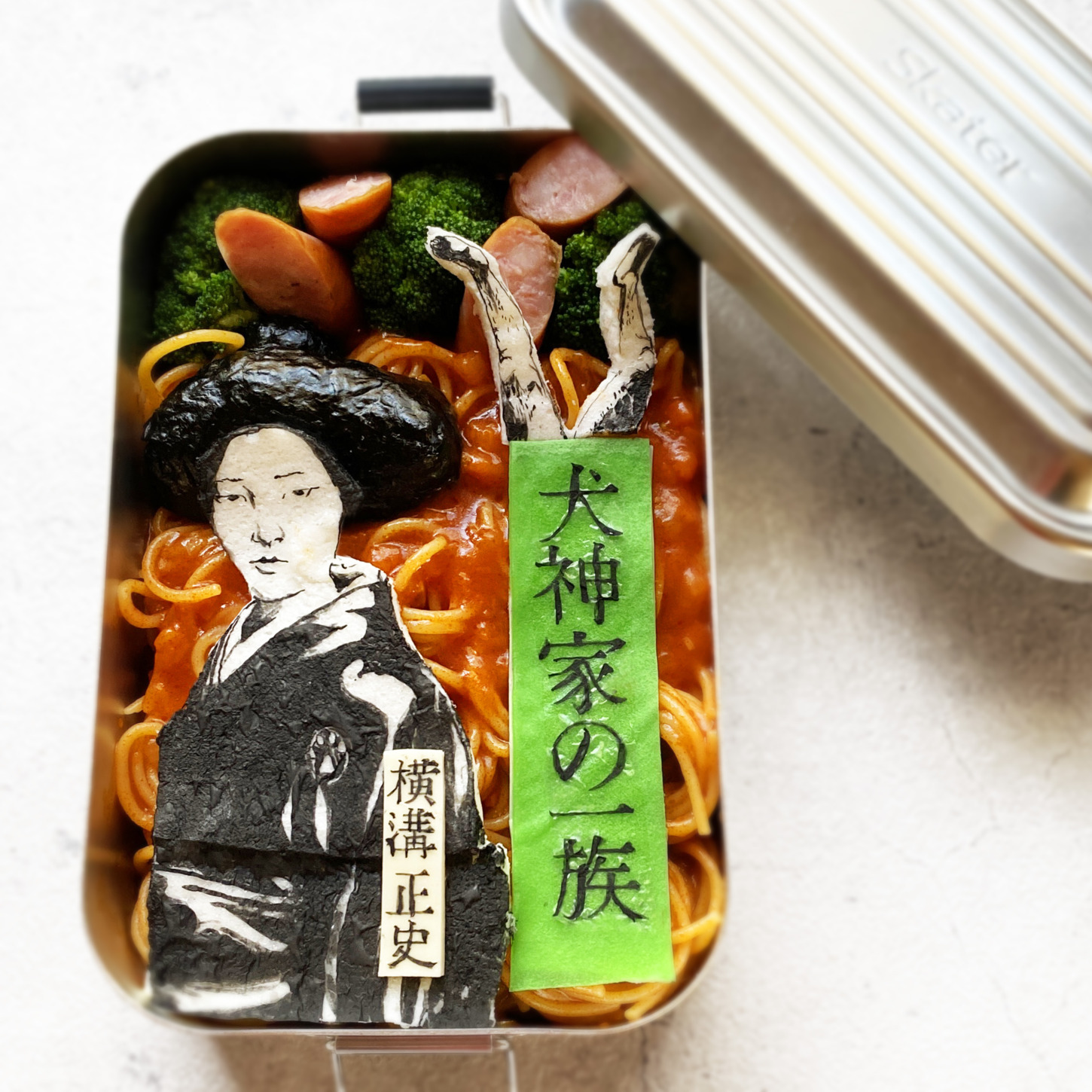 今日は弁当の中に犬神家弁当。