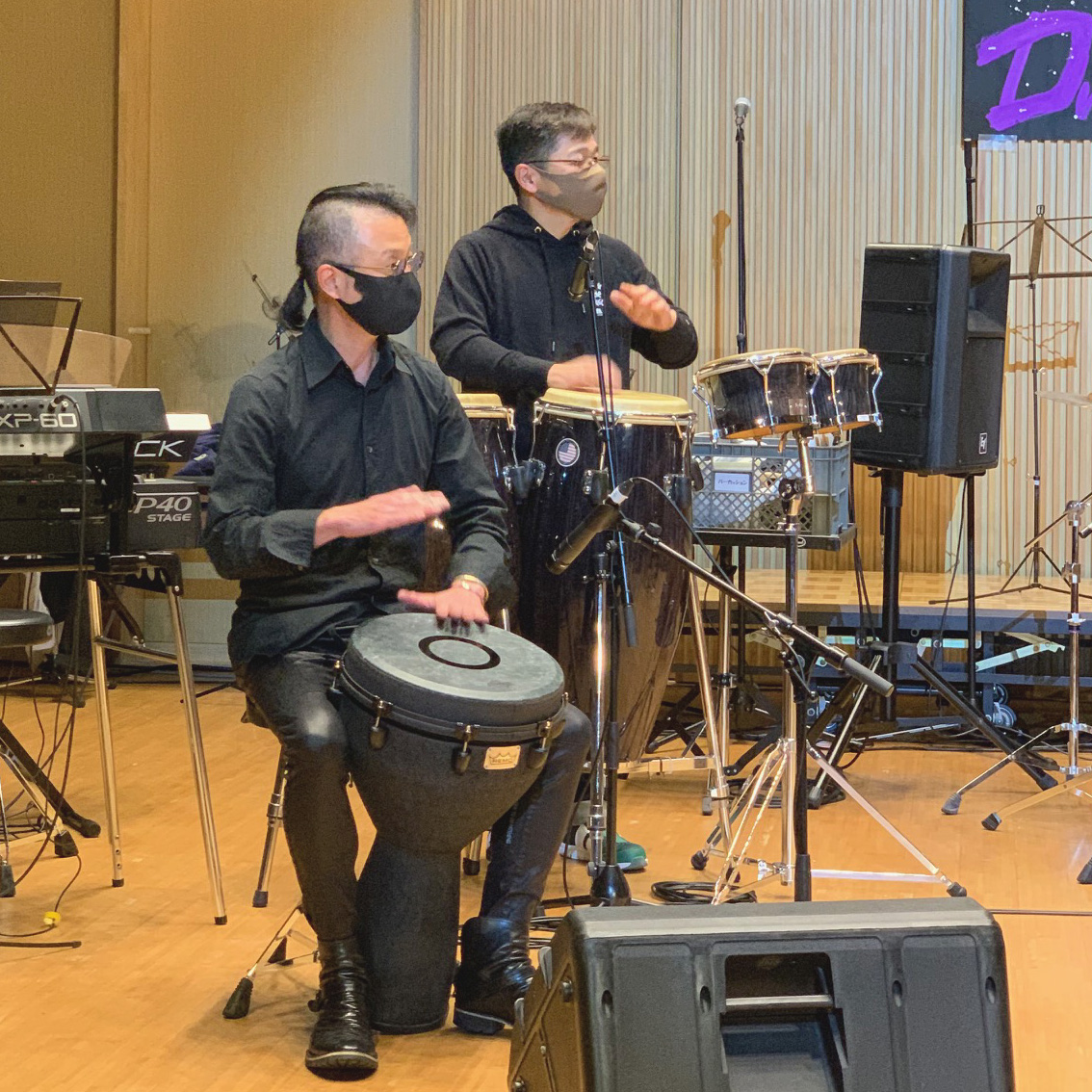 黒いジャンベとコーデしてます。
