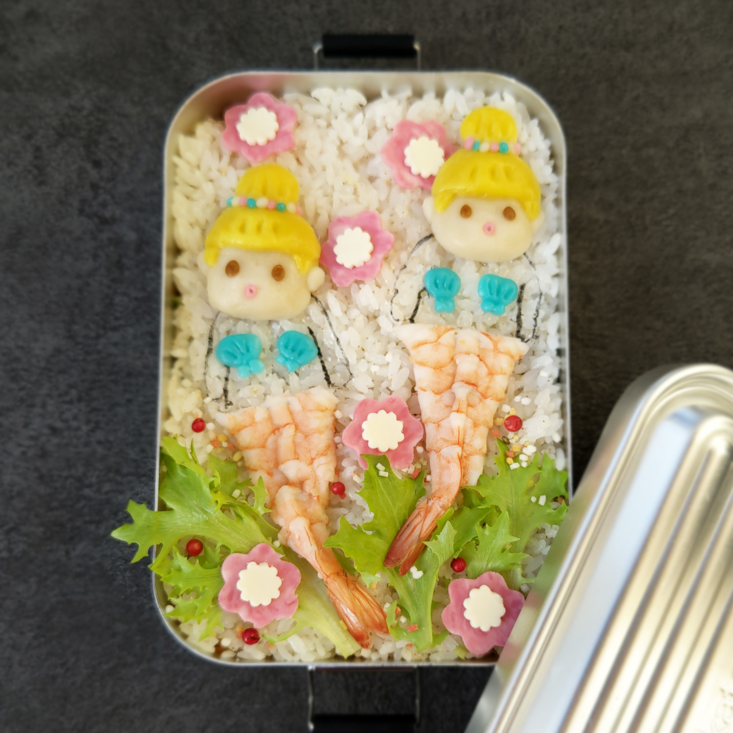 人参、椎茸、ほうれん草のナムル、錦糸卵、エビが隠れています。
