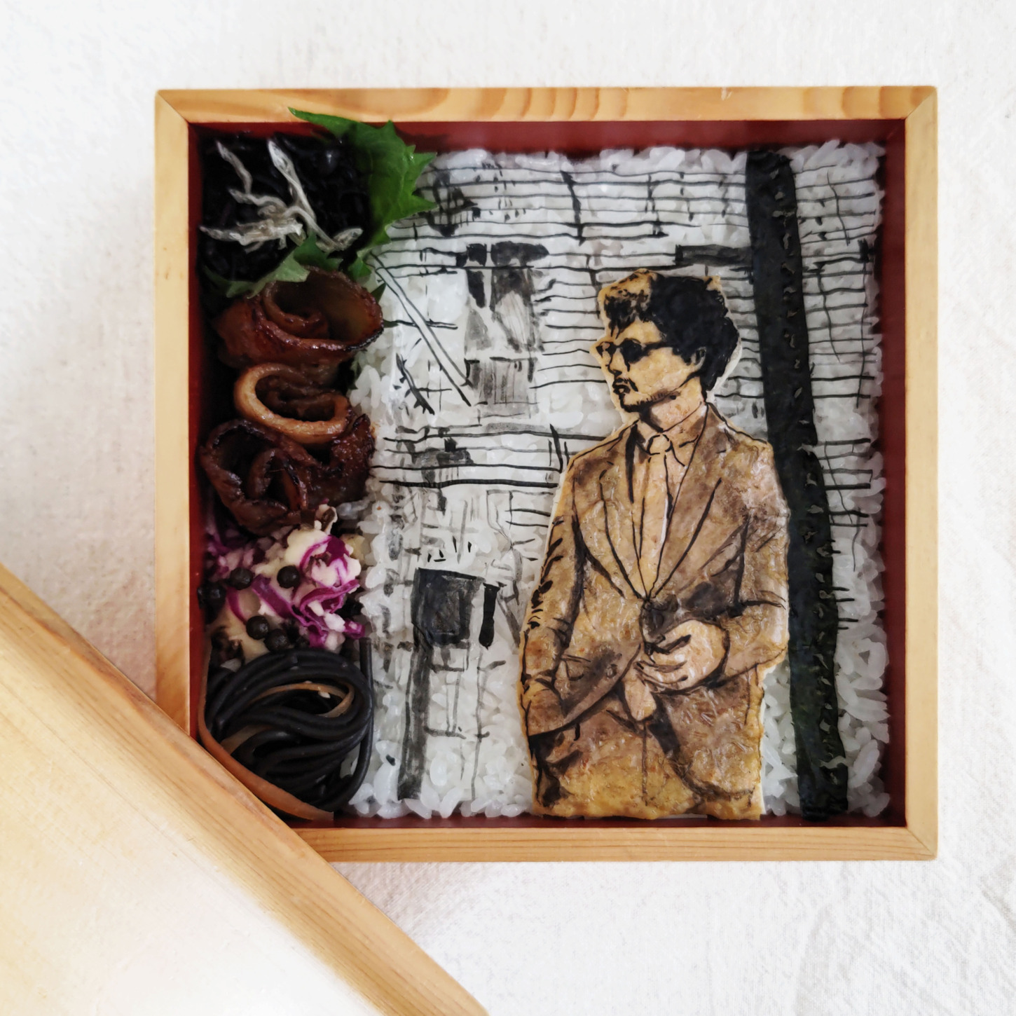 ご飯はおかかが挟んであり、オブラートアートと海苔で飾った後、