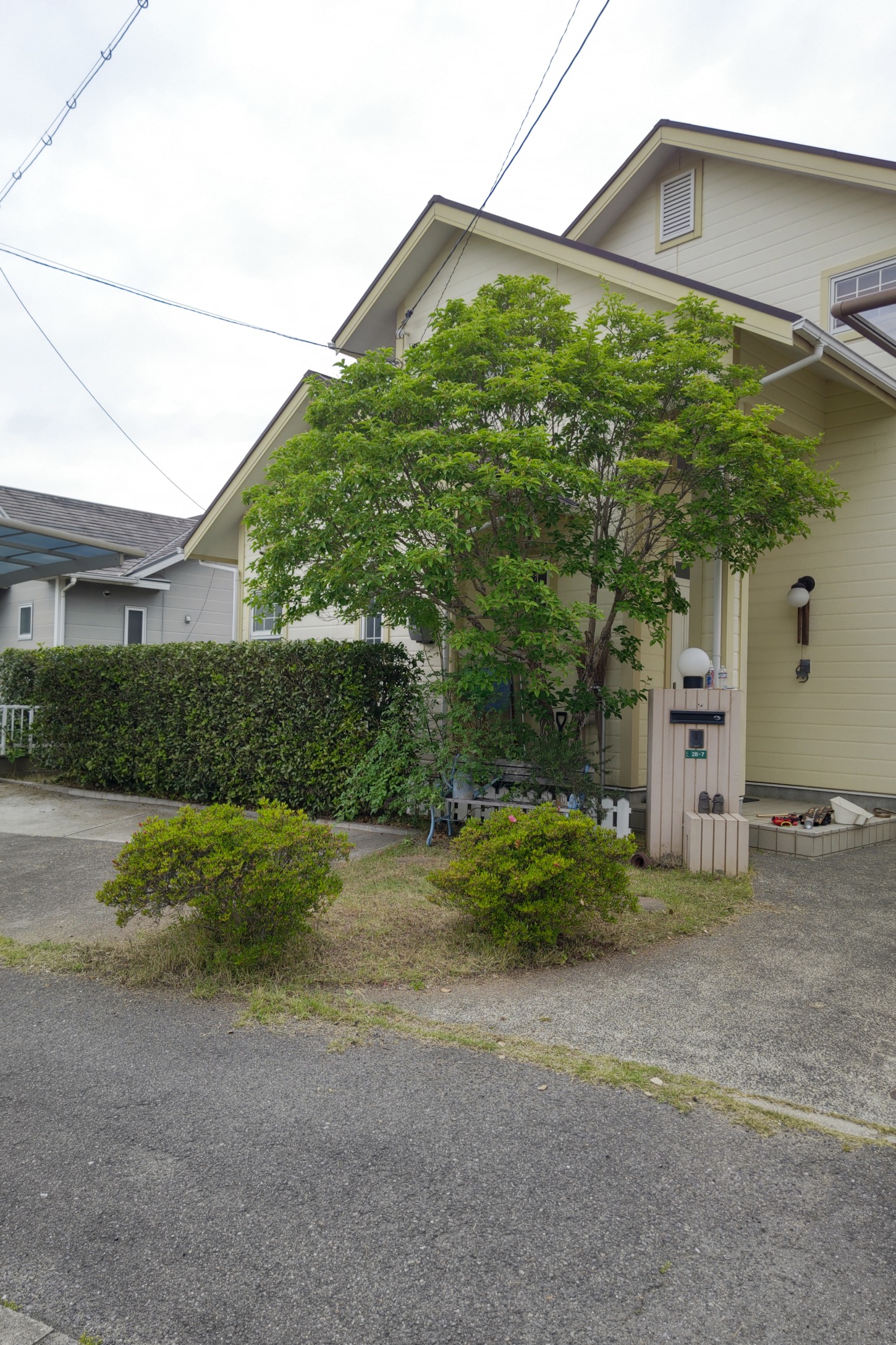 生垣の剪定、草むしり、芝刈り、消毒まで済ませてしまいました。