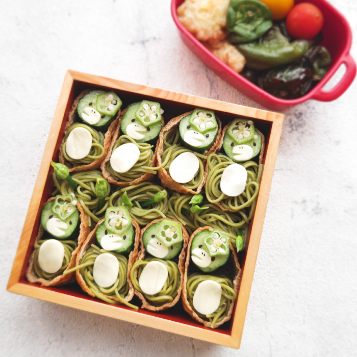 とり天とグリルでそのまま焼いただけのピーマンとプチトマト。