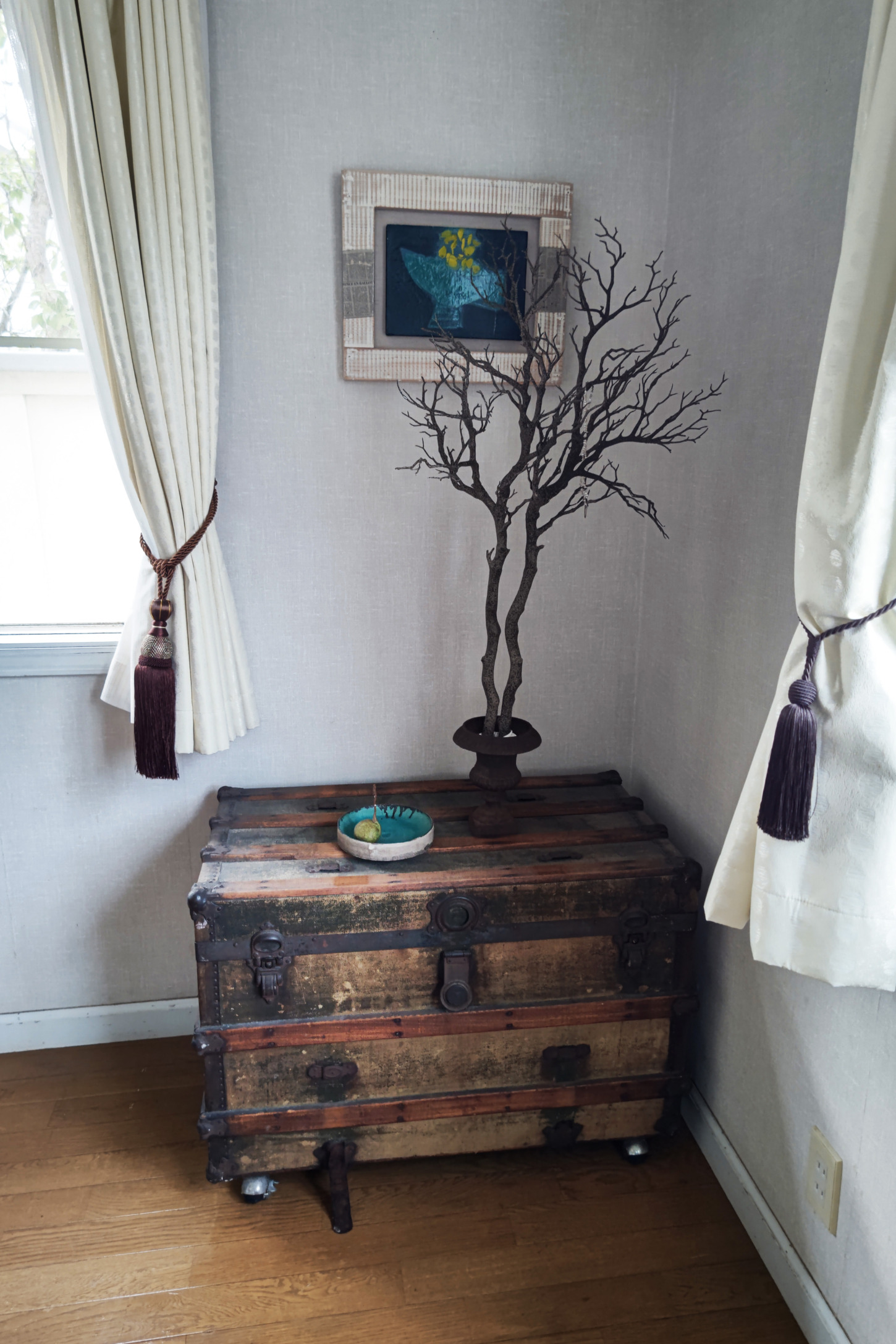 忙しい時に限って、違うことをいろいろ考えます。わざと錆びさせた花器を飾る