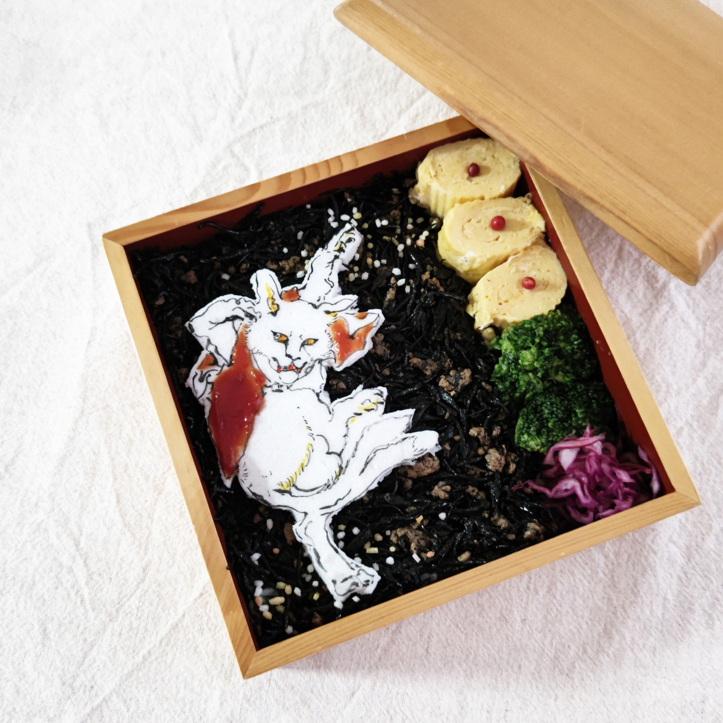 河鍋 暁斎の猫又をモチーフに弁当を作りましたよ。