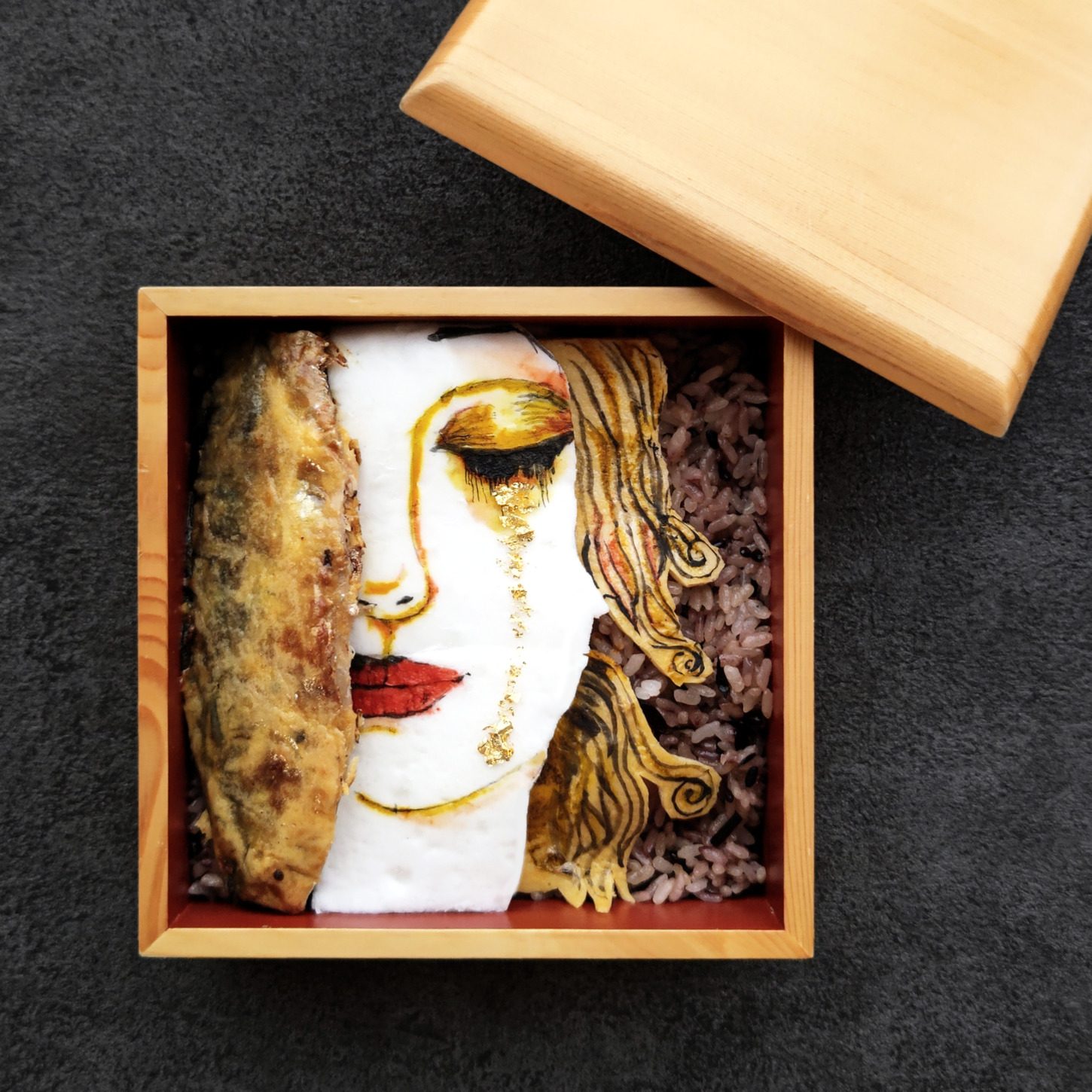 ひじきと黒米入りご飯に卵焼きの髪。
