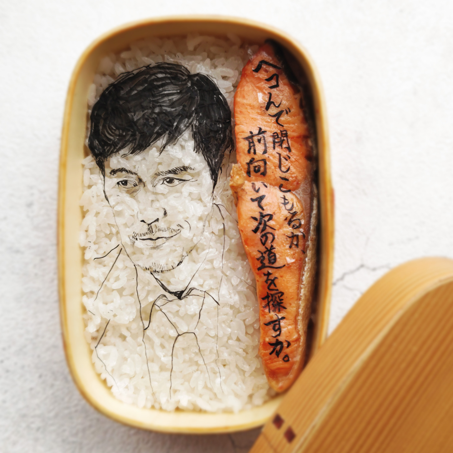 今日は金曜日恒例のシャケ弁「ドラゴン桜の」桜木健二を演じていた 阿部寛さんを描きました。 いつもモチーフがちょっと古め