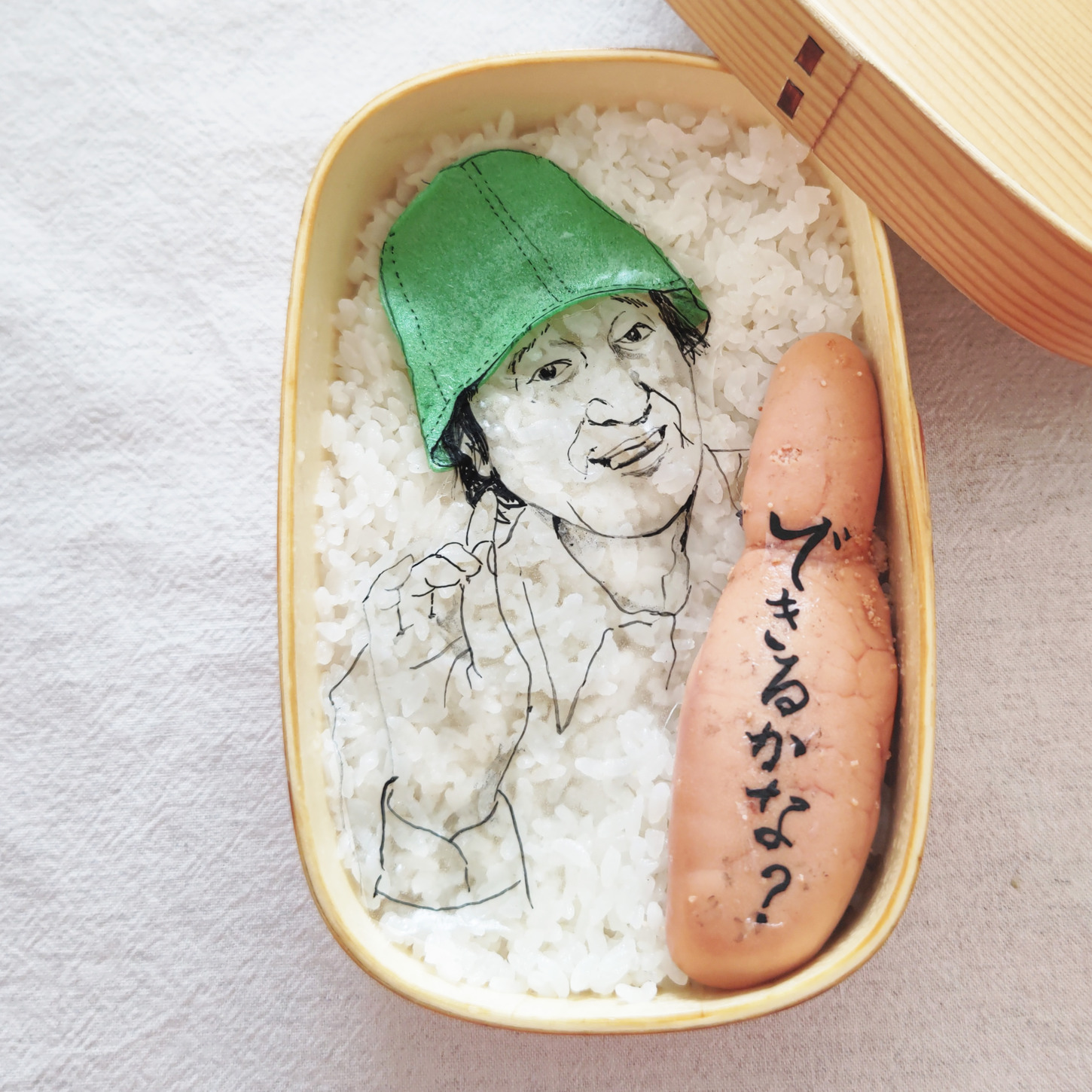 金曜日恒例のシャケ弁。のっぽさんこと高見のっぽさんを描きました