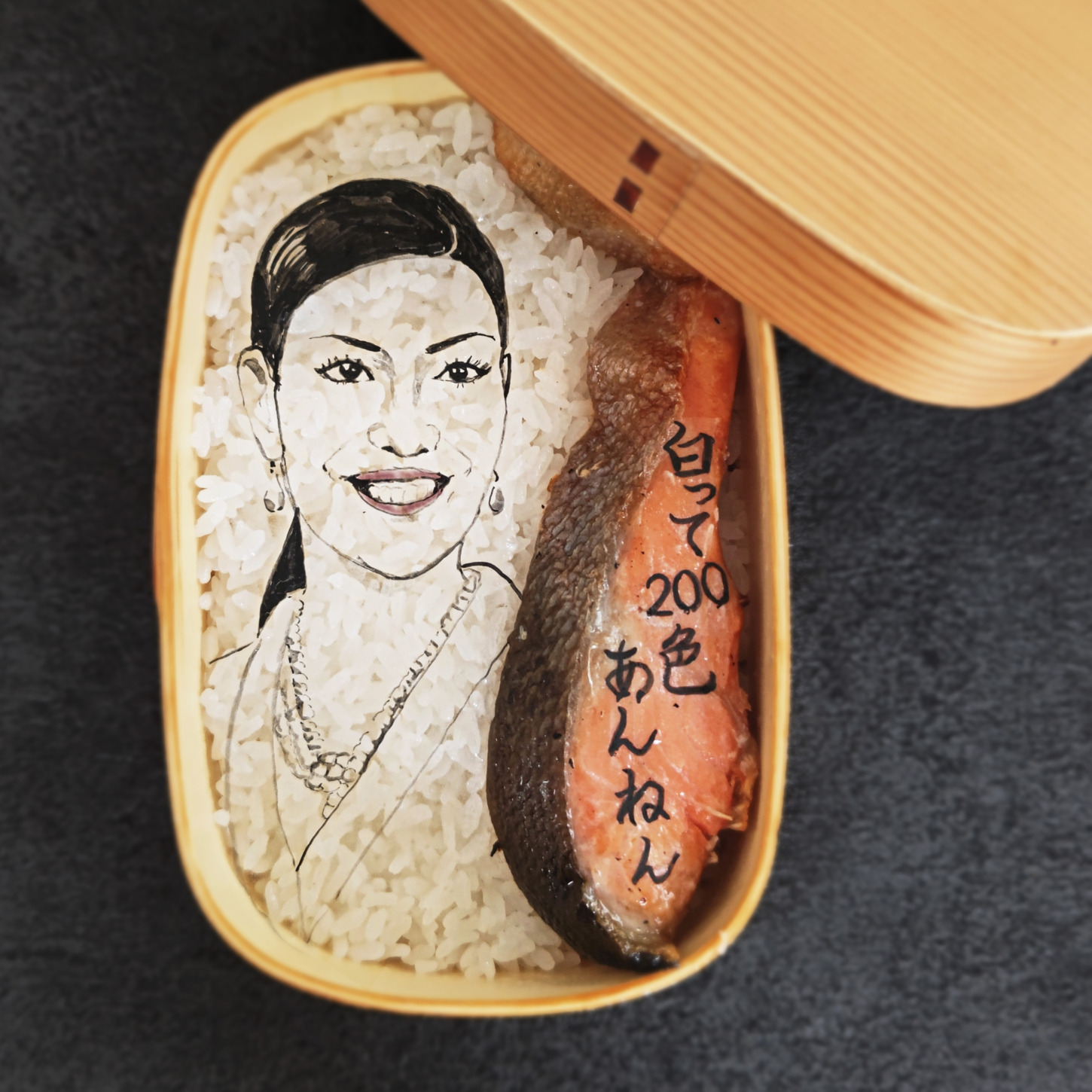 今日は金曜日恒例のシャケ弁です。アンミカさんを描きました。