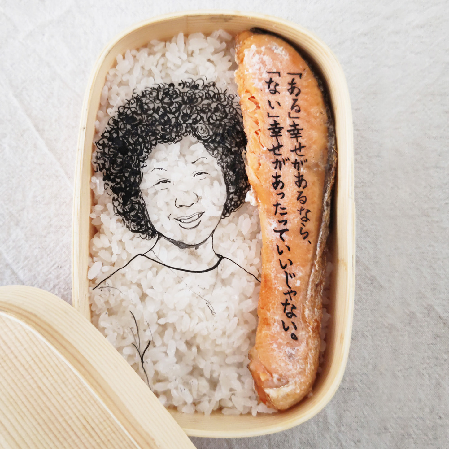 金曜日恒例のシャケ弁は稲垣えみ子さんを描きました