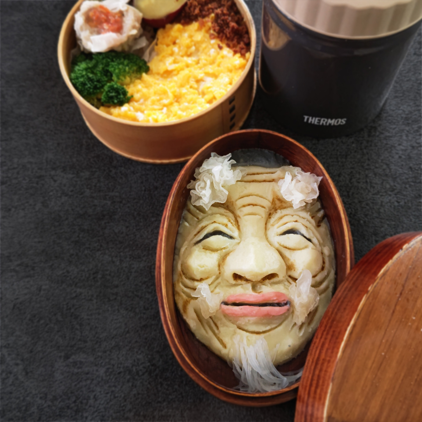 眉とヒゲは白キクラゲ。アゴヒゲは春雨です。