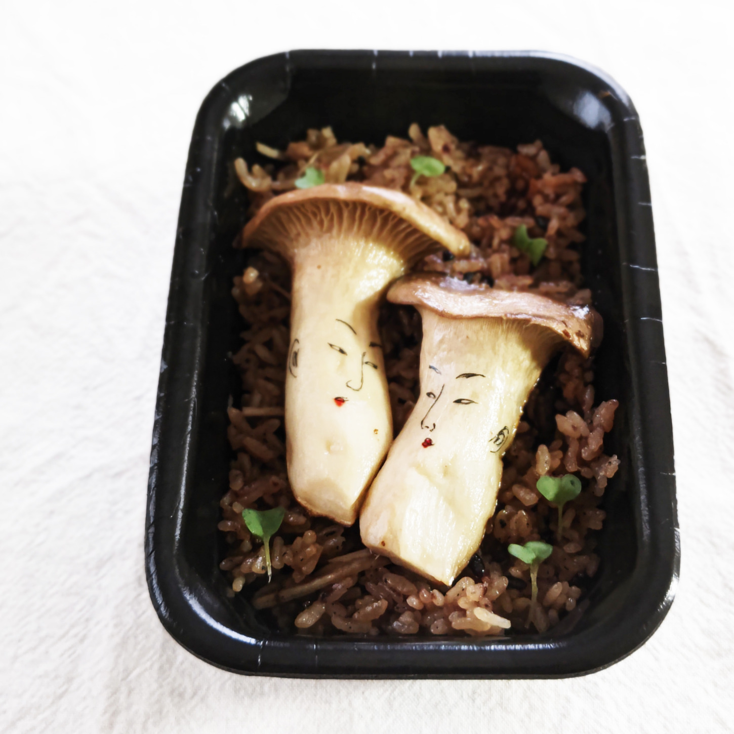 菌断の恋路…鈴木春信の「雪中相合傘」をモチーフに寄り添うエリンギが艶かしい弁当
