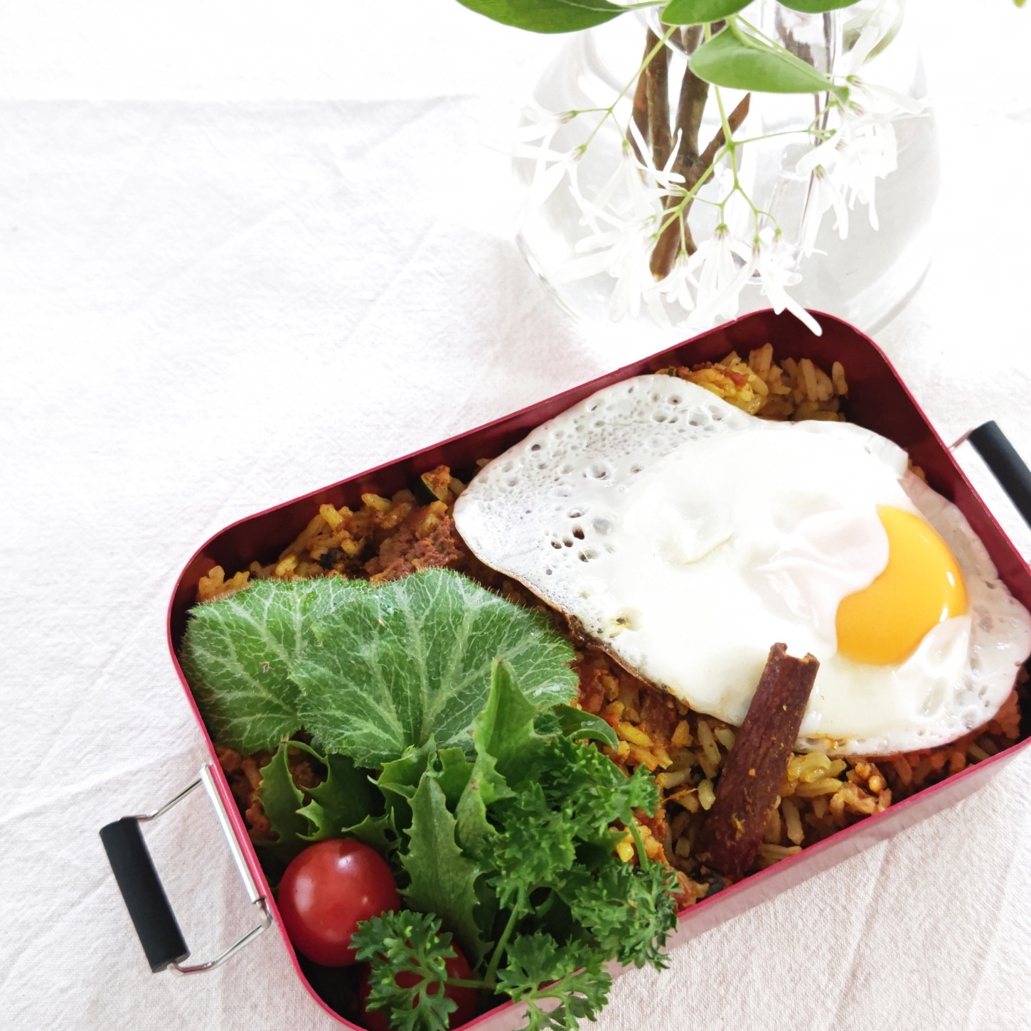 ビリヤニ朝炊き弁当。爽やかではないけど、朝から元気が出ます