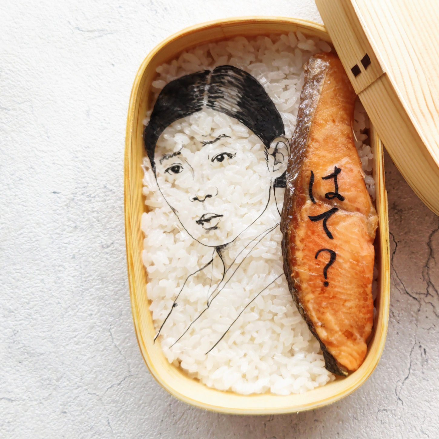 今日は金曜日恒例のシャケ弁。朝ドラ「虎と翼」のヒロイン伊藤沙莉さんをかきました