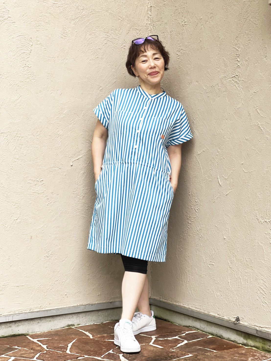 ワンピースの裾からのぞく足は短くて膨張気味です。