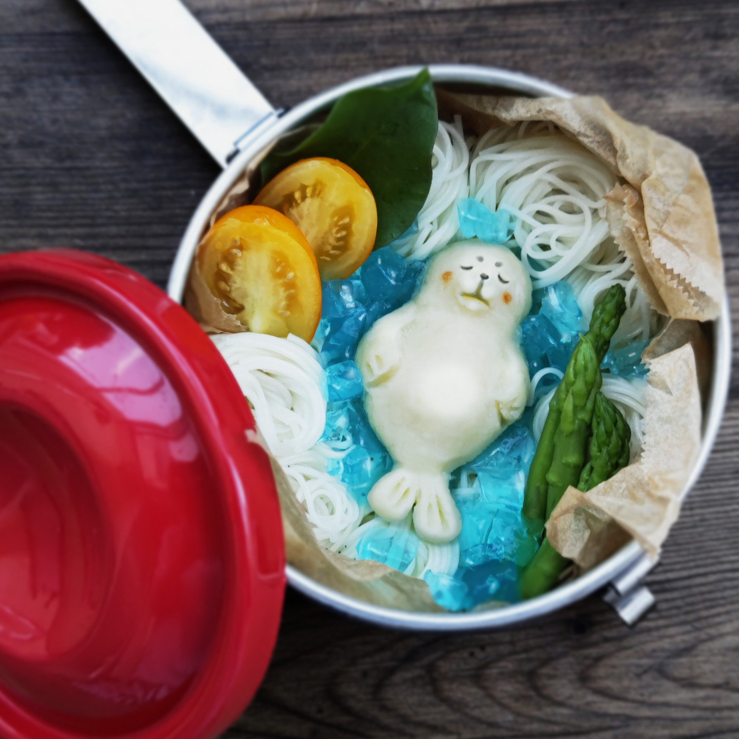 そうめんにタユタウあざらしくんのプカプカ弁当。クマ顔だけど…