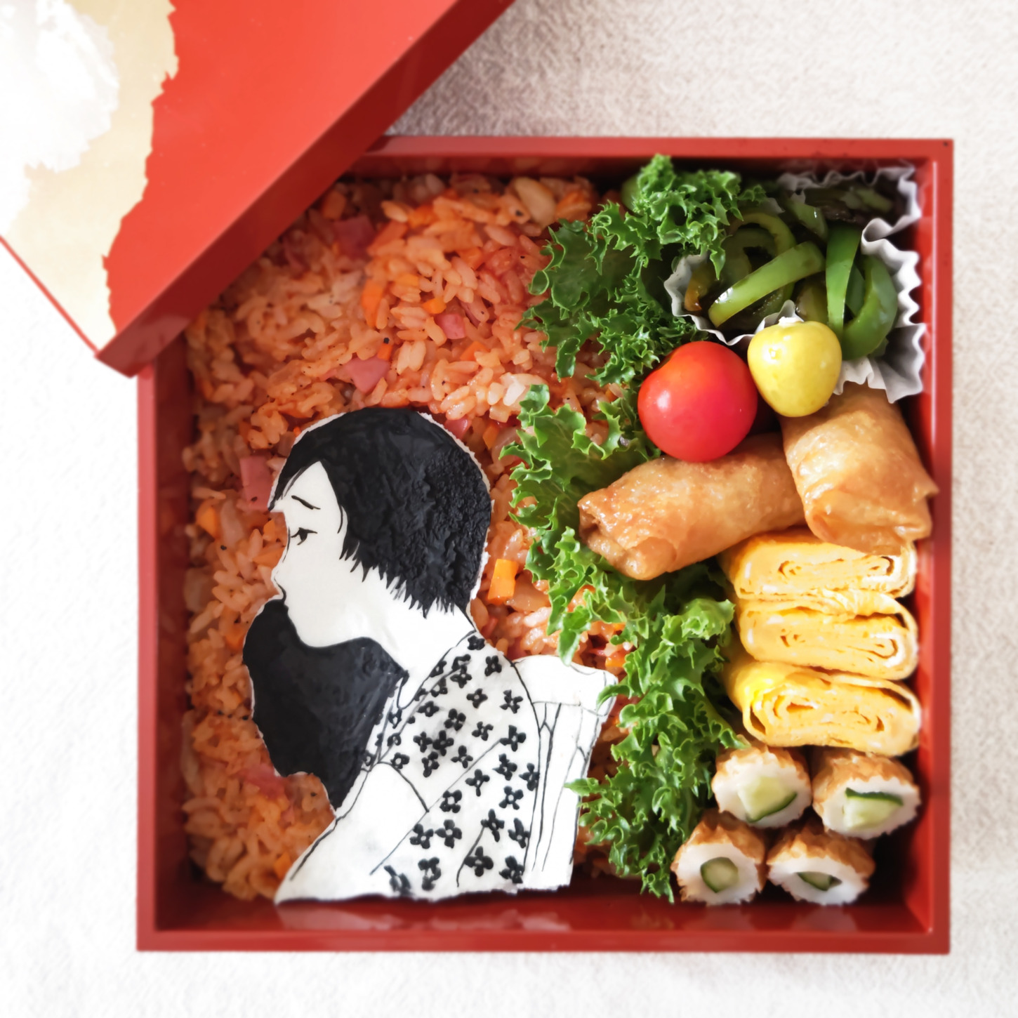 「赤色エレジー」の幸子をモチーフに今日は赤色ライス弁当