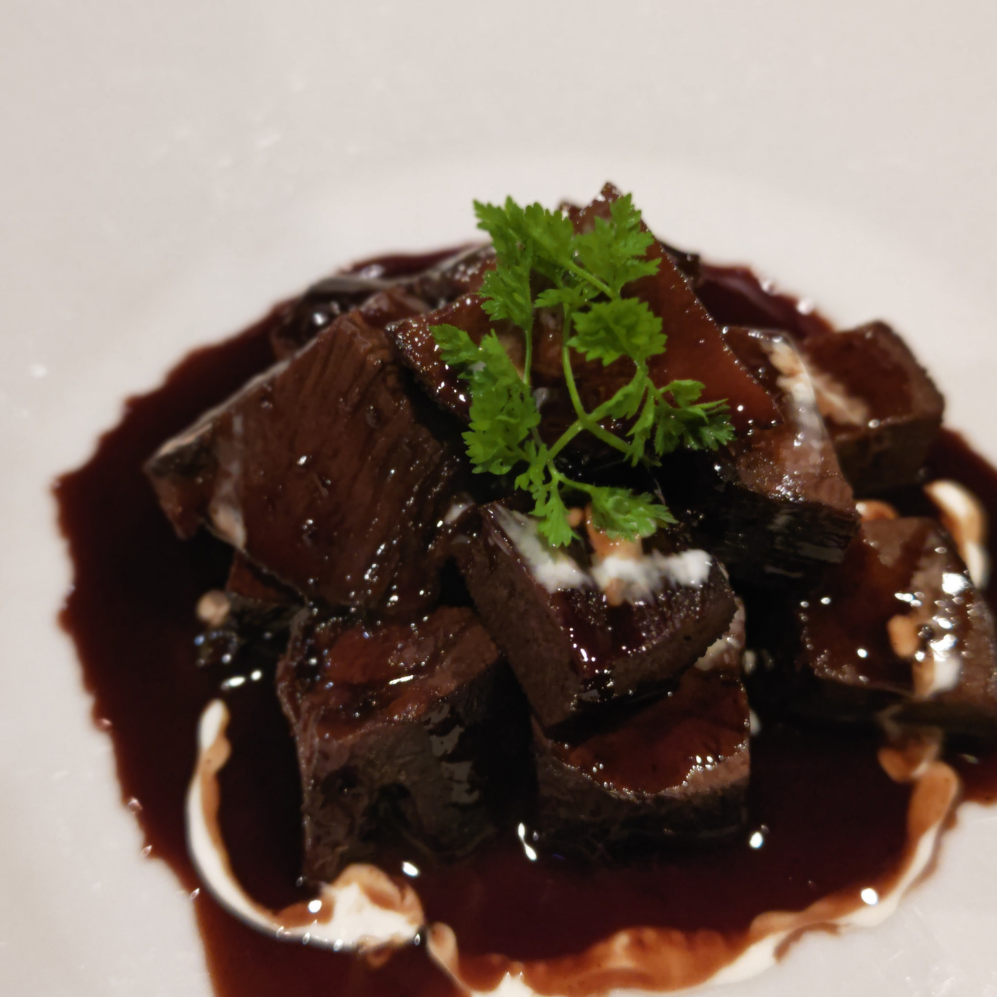 絶品の牛タンのワイン煮とパエリアは外せません。