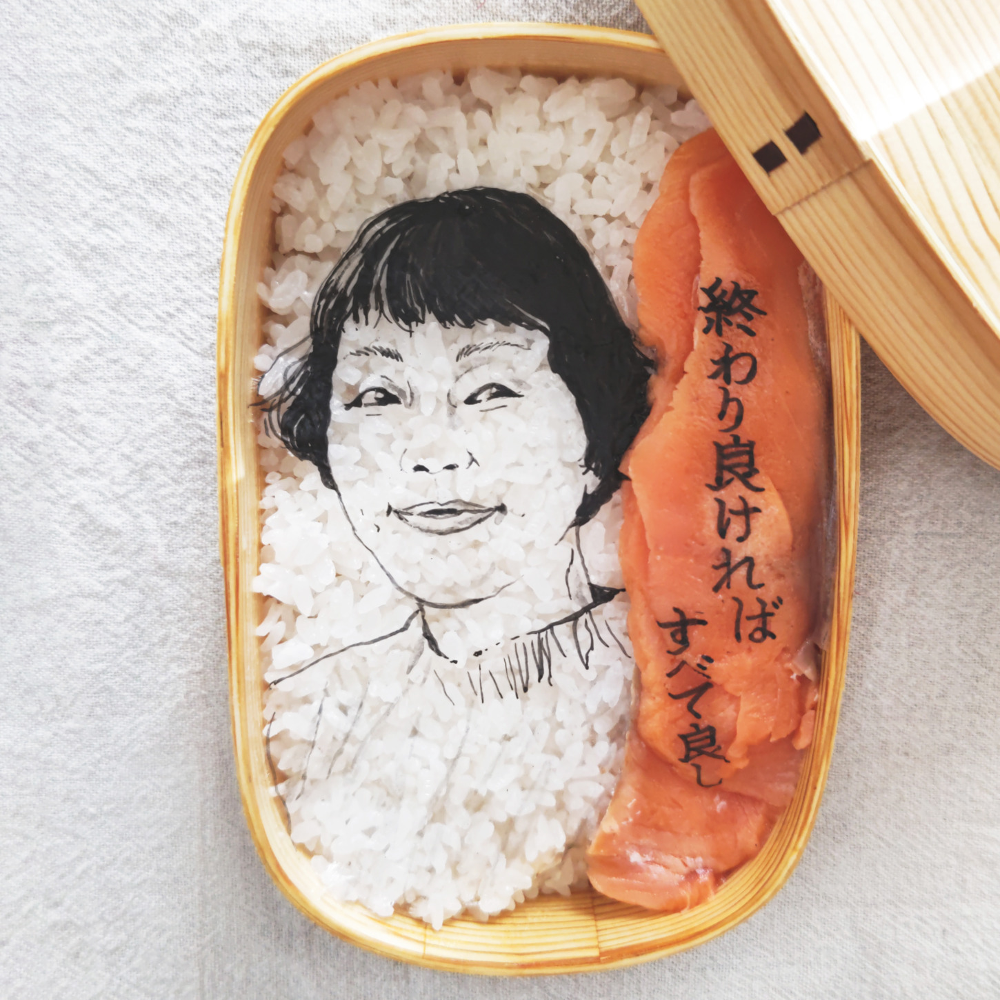 金曜日恒例のシャケ弁。小林聡美さんを描きました