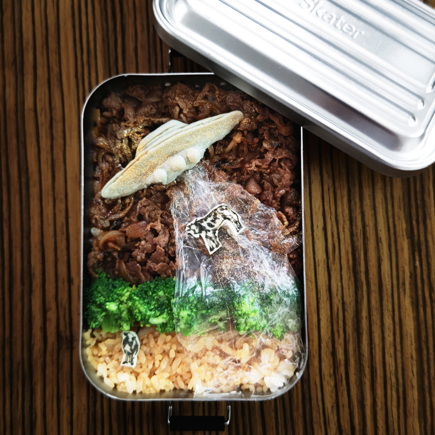 UFOに囚われた牛さんをモチーフに牛丼弁当を作りました。