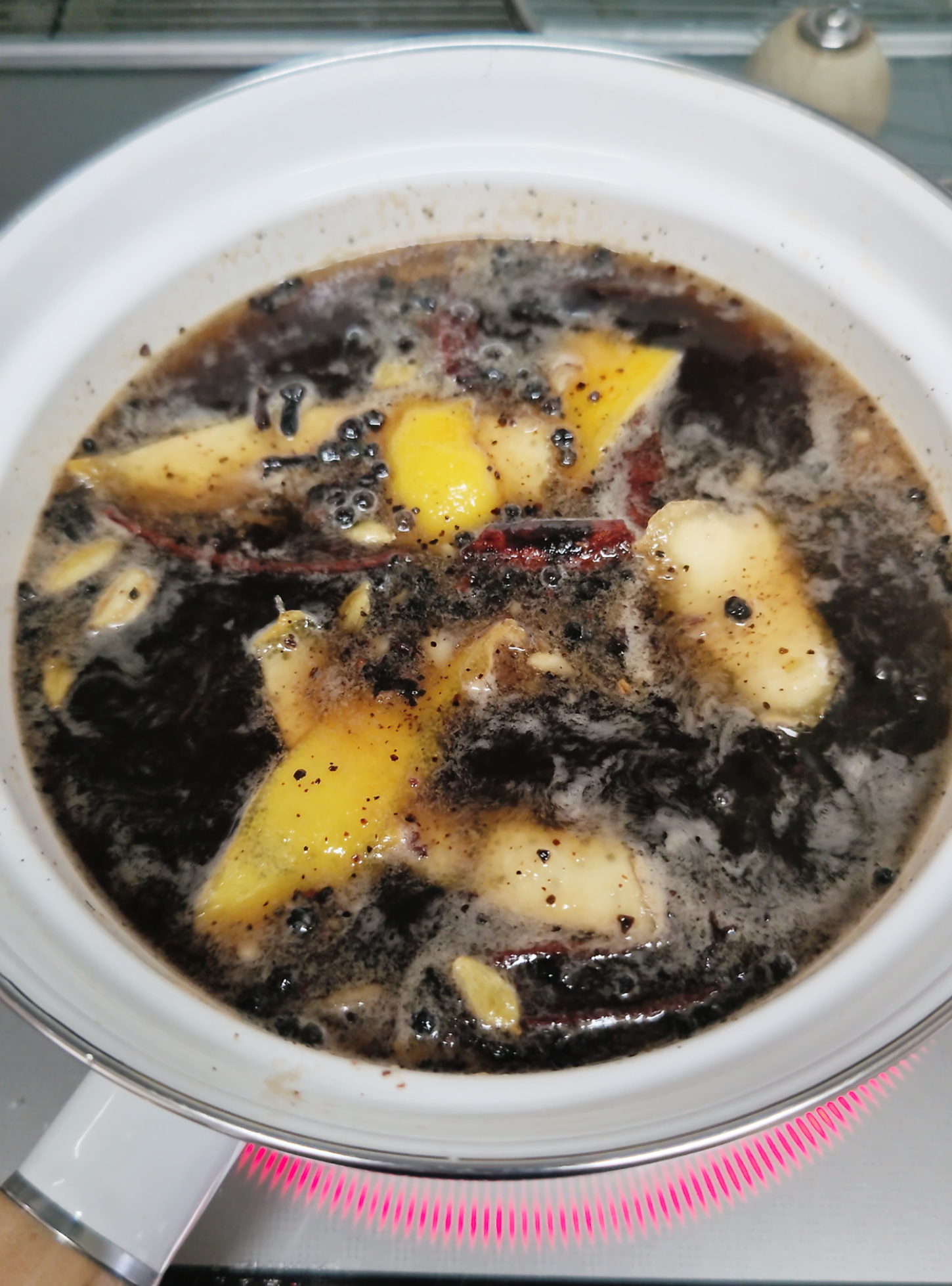 台所全体がベトベトしますが、クラフトコーラ仕込み中
