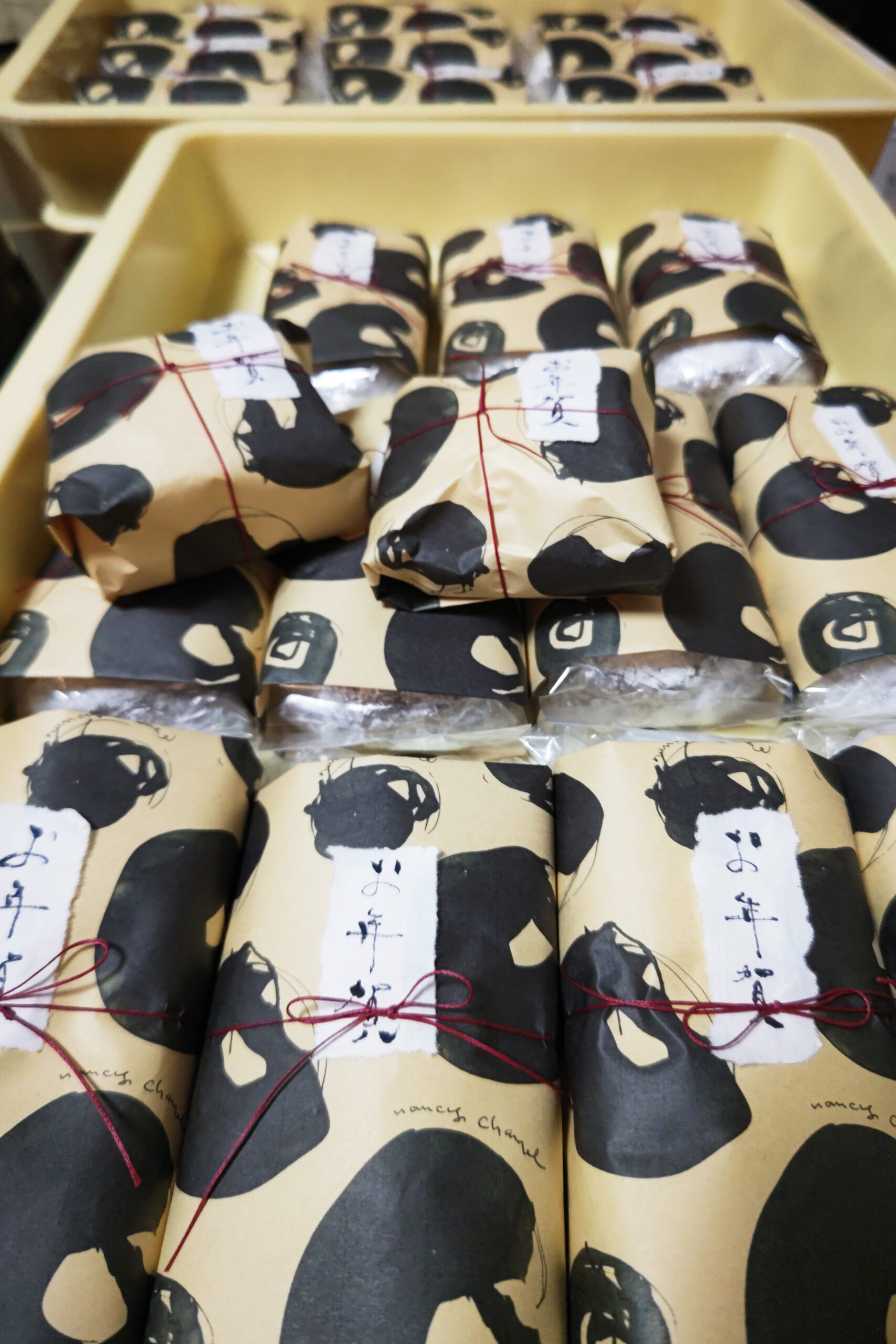 焼いて、冷まして、砂糖を振りかけて、パッケージ。